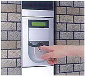 指を入れ血流パターンを識別してエントランスのドアを解錠する厳重なオートロックを導入。